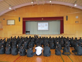 昨日の啓志式を経て、3学年そろって生徒集会を行いました。