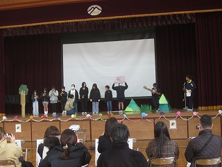 4年生は、体育館で「10歳を祝う会」を行いました。歌やリコーダー、そして演技も入った音楽朗読劇「ごんぎつね」や、全員が一人一人、なりたい自分を宣言する「10歳の未来宣言」など、これまで準備してきた成果を発表することができました。また、プログラムの最後には、おうちの方への感謝の気持ちを込めて「10歳をむかえる日に」を歌いました。少し緊張しながらも嬉しそうな子どもたちの表情が印象的でした。