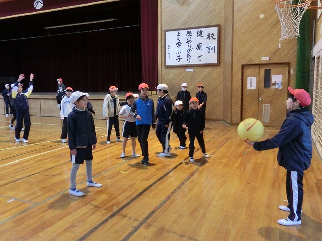 今日の谷南小タイムは、123年生が考えた遊びをする時間。あいにく雨のお天気になってしまいましたが、123年生が晴雨どちらの場合も考えておいたので、体育館で雨の日バージョンの計画で遊びました。