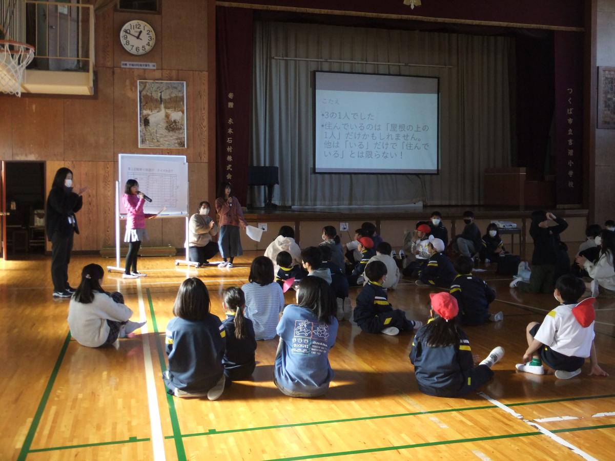 内容は、全校児童が楽しめる「クイズ大会」です。実行委員は、問題の内容はもちろん、答え方やスムーズな得点集計の方法など、自分たちで一生懸命工夫を凝らして準備を進めてきました。当日は学年を超えて協力し合う姿が見られ、笑顔あふれる素敵な時間となりました。